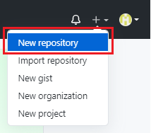- 다음으로는 깃허브에 원격저장소를 만들어 보겠습니다. 깃허브 로그인 후 오른쪽 + 아이콘 클릭 후 New repository 선택합니다.